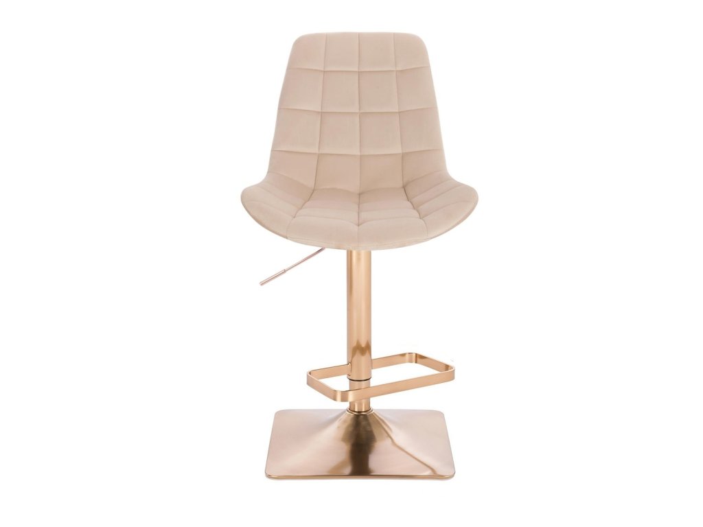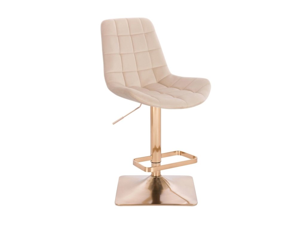 Barová židle PARIS VELUR na zlaté hranaté podstavě - krémová