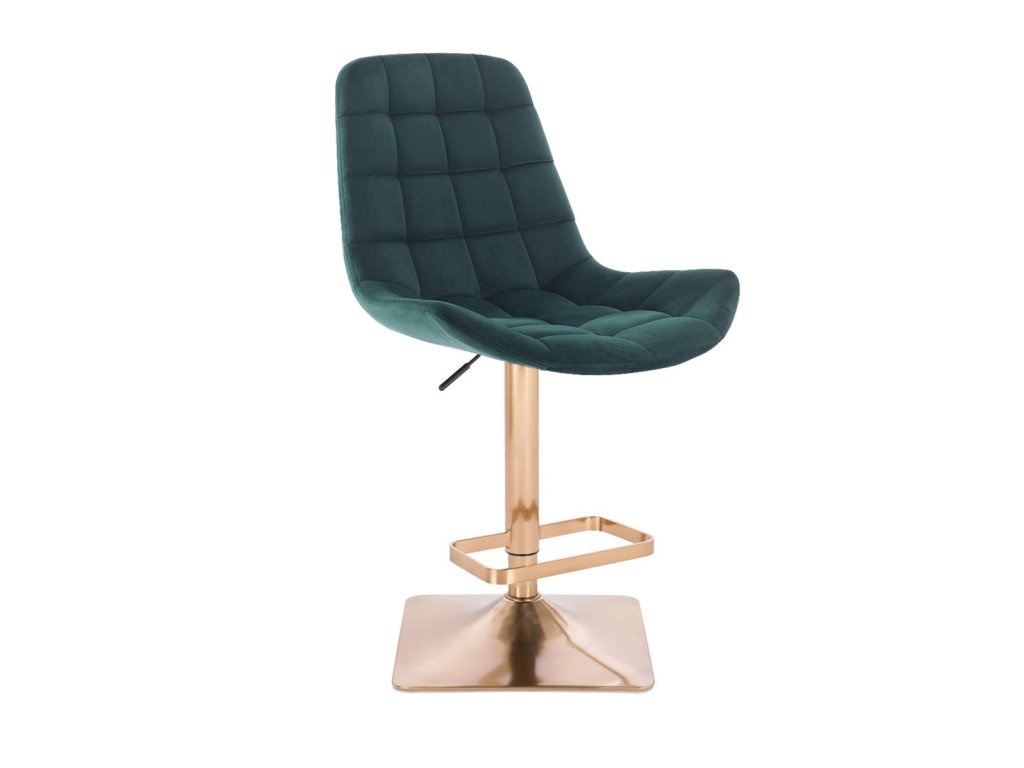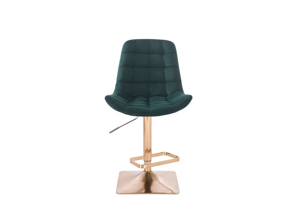 Barová židle PARIS VELUR na zlaté hranaté podstavě - zelená