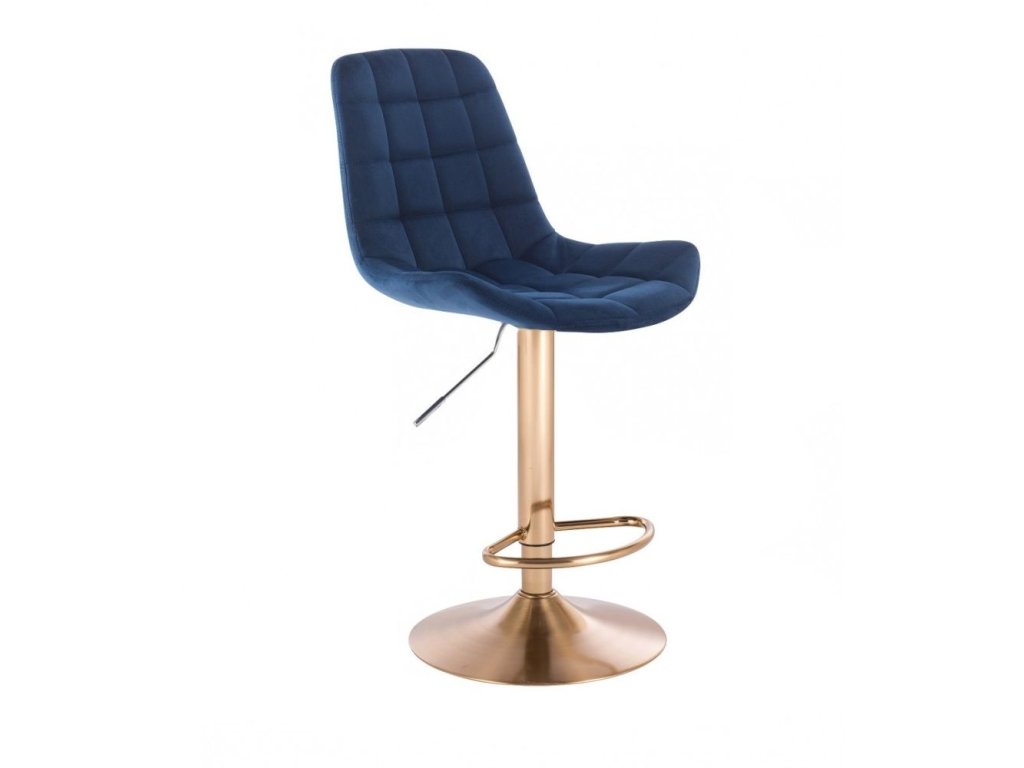Barová židle PARIS VELUR na zlatém talíři - modrá