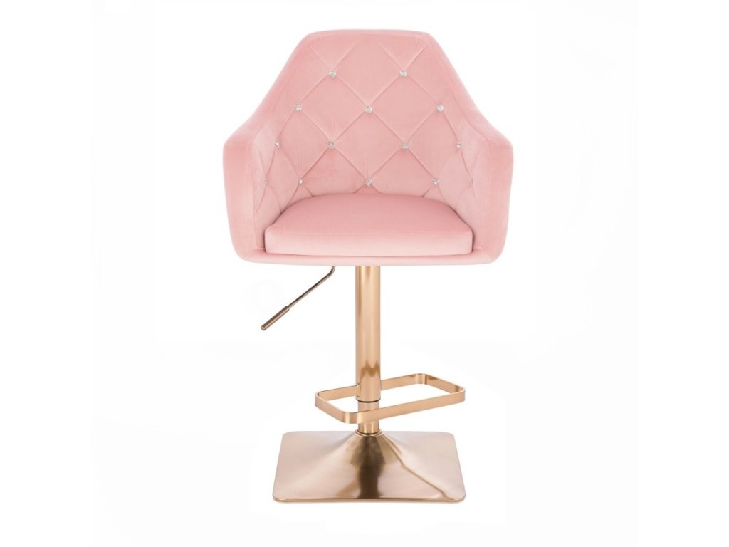 Barová židle ROMA VELUR na zlaté hranaté podstavě - světle růžová