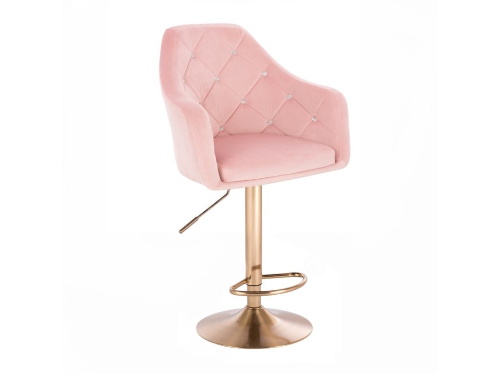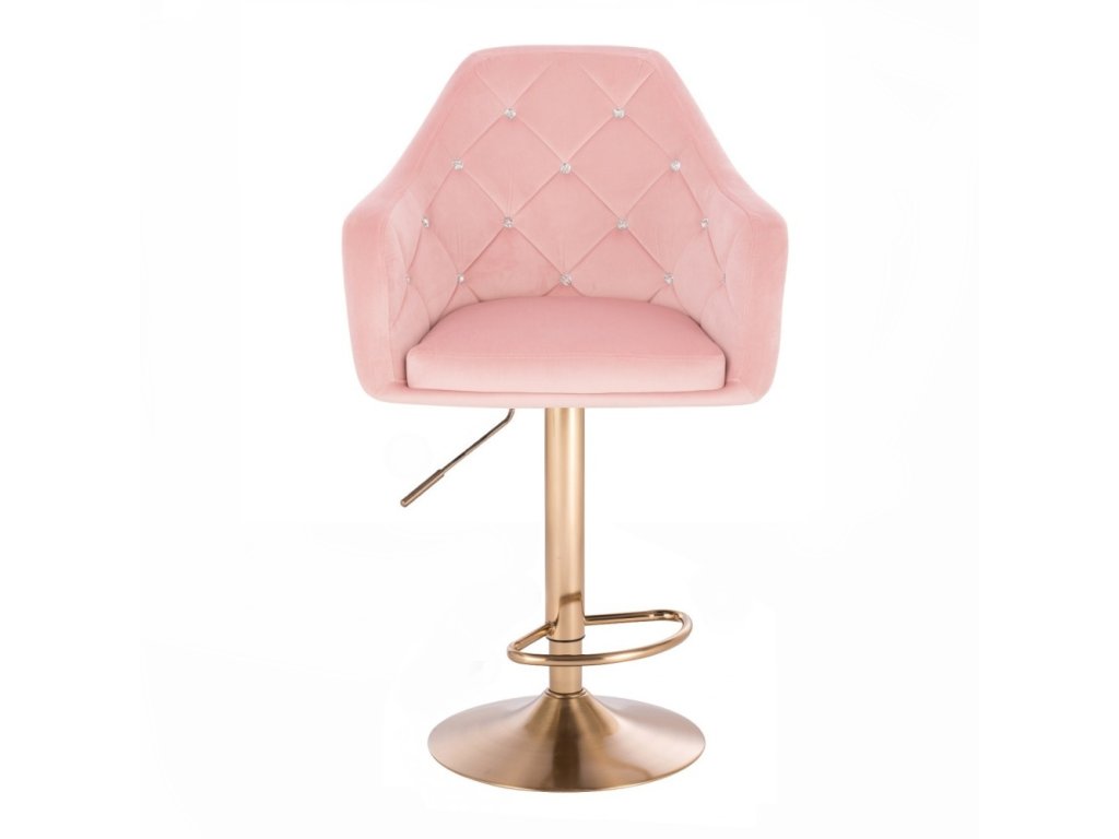 Barová židle ROMA VELUR na zlatém talíři - světle růžová