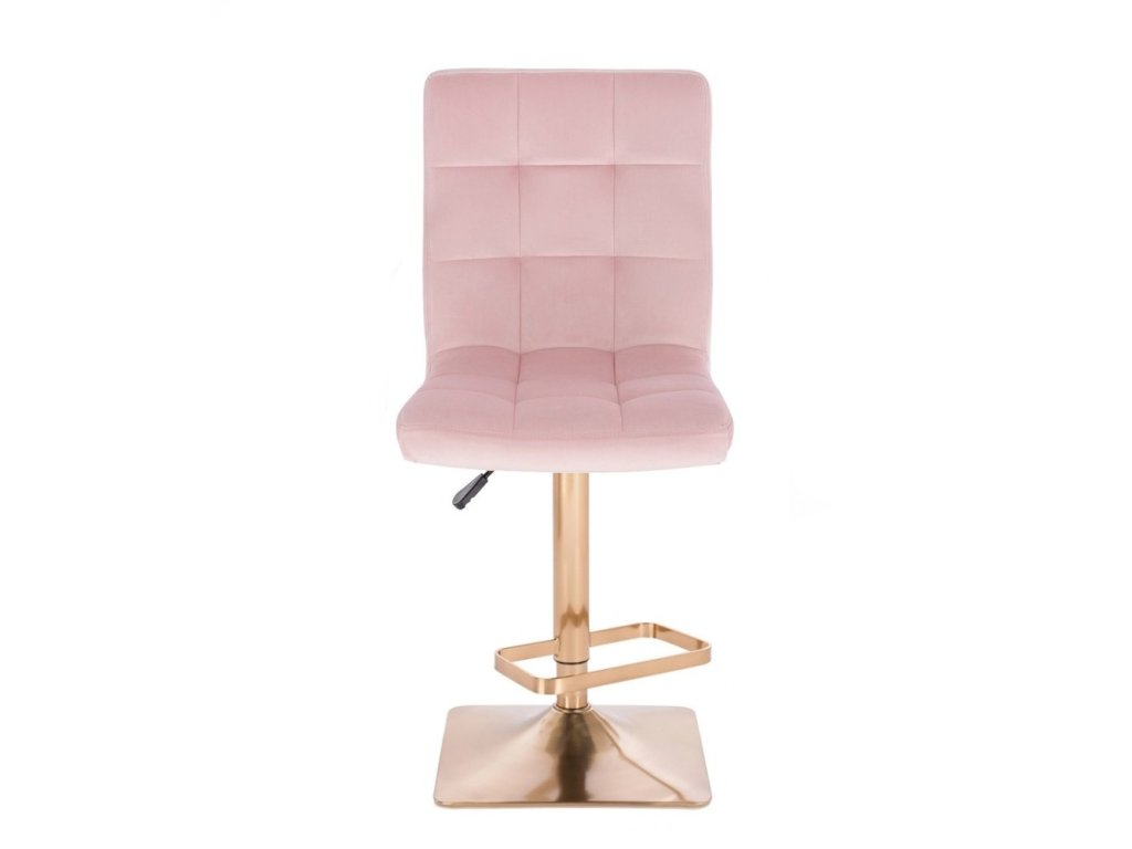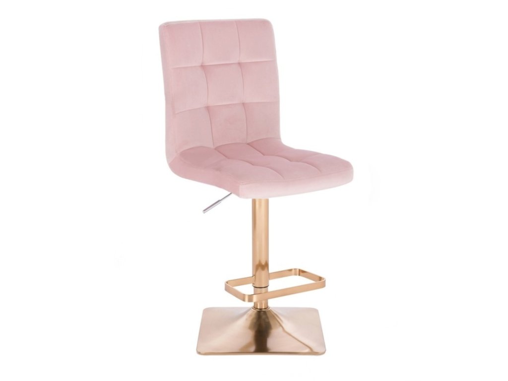 Barová židle TOLEDO VELUR na zlaté hranaté podstavě - světle růžová