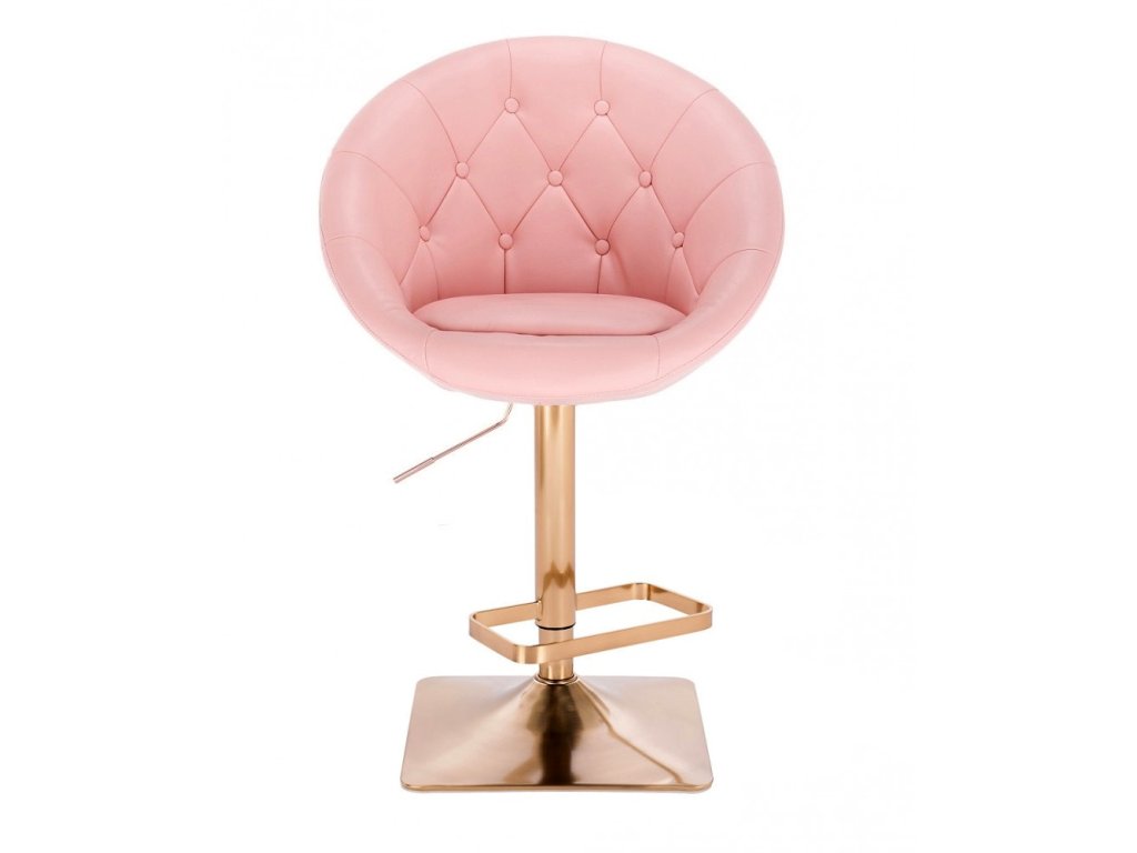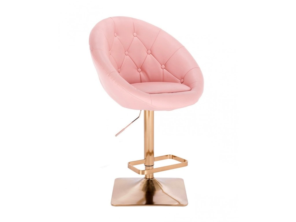 Barová židle VERA na zlaté hranaté podstavě - světle růžová