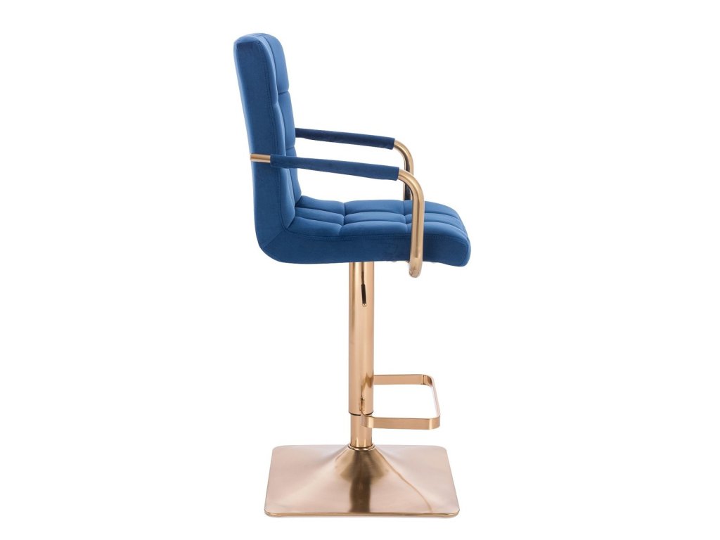 Barová židle VERONA GOLD VELUR na zlaté hranaté podstavě - modrá