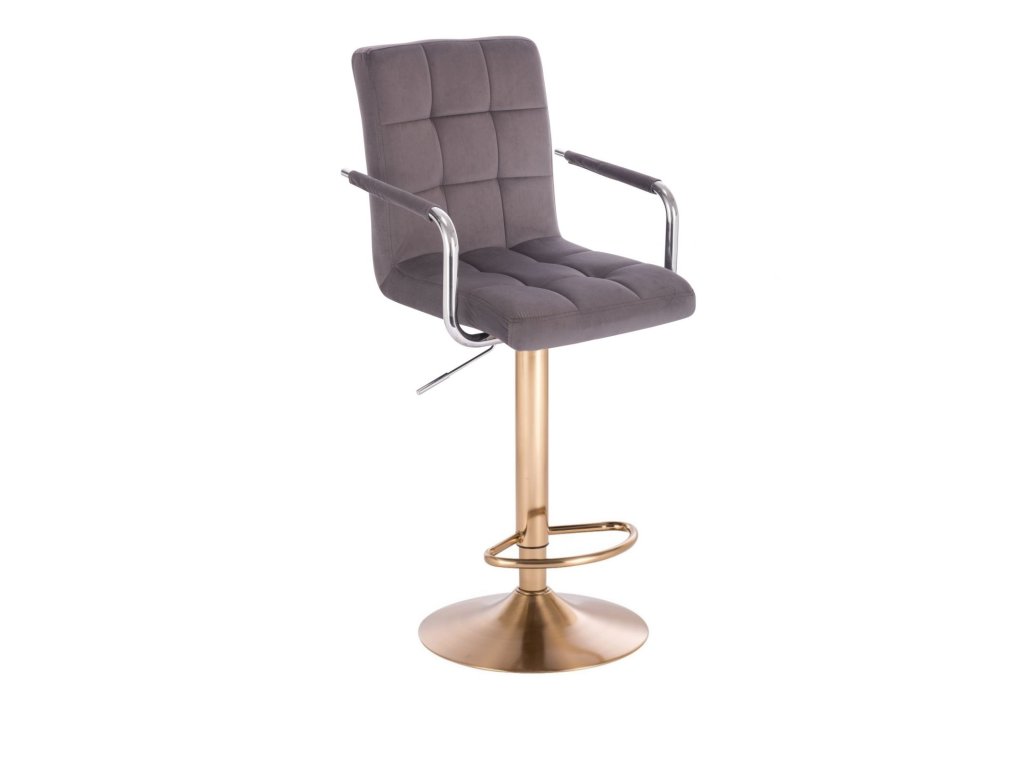 Barová židle VERONA VELUR na zlatém talíři - tmavě šedá