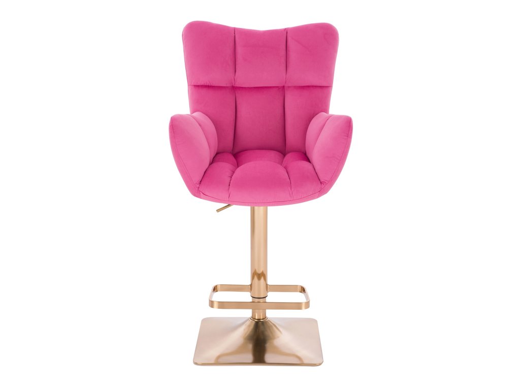 Barové křeslo AURORA VELUR na zlaté hranaté podstavě - tmavě růžové
