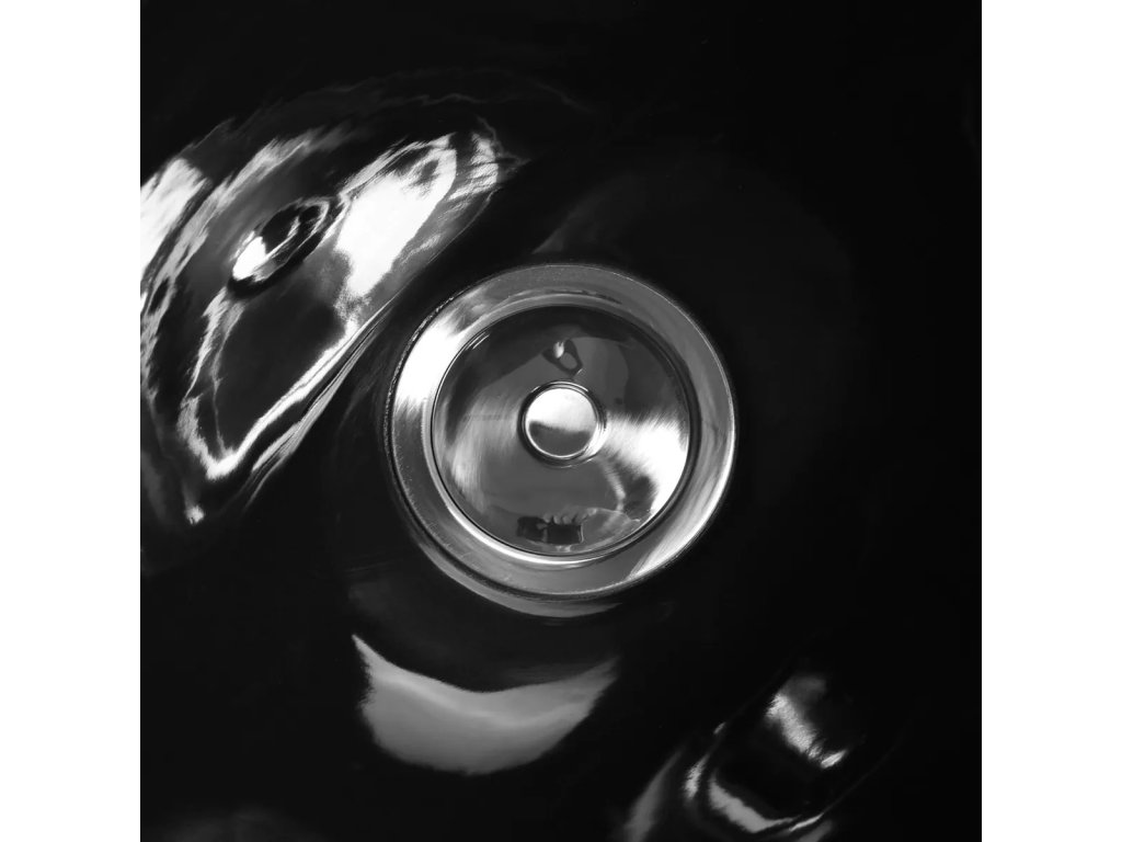 Vhodná hloubka černé keramické mísy zabraňuje nadměrnému stříkání vody