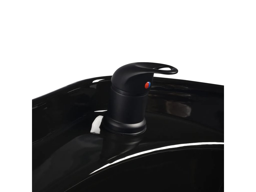 Vhodná hloubka černé keramické mísy zabraňuje nadměrnému stříkání vody
