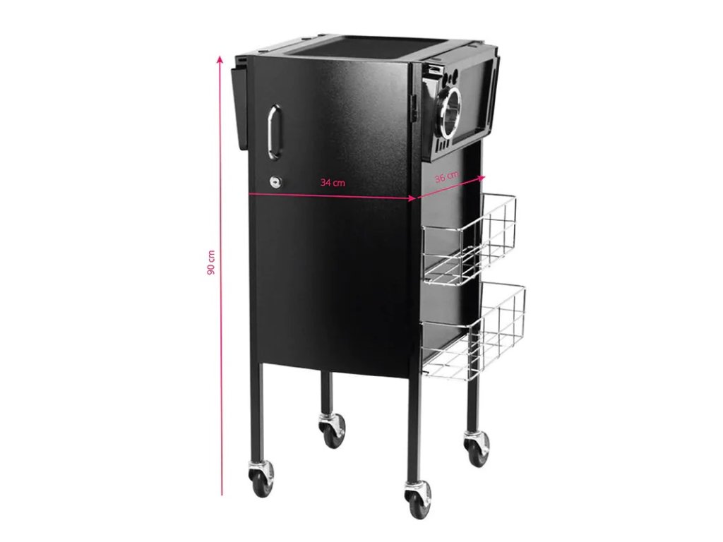 Je vybaven silnými kolečky, samostatnými uzamykatelnými dvířky pro bezpečnost