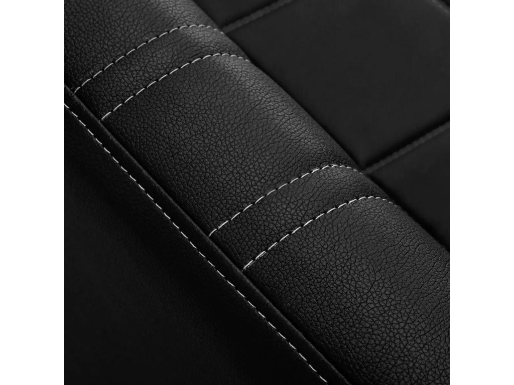 Široké sedátko s černou syntetickou kůží pohodlně pojme až tři osoby a umožní vám