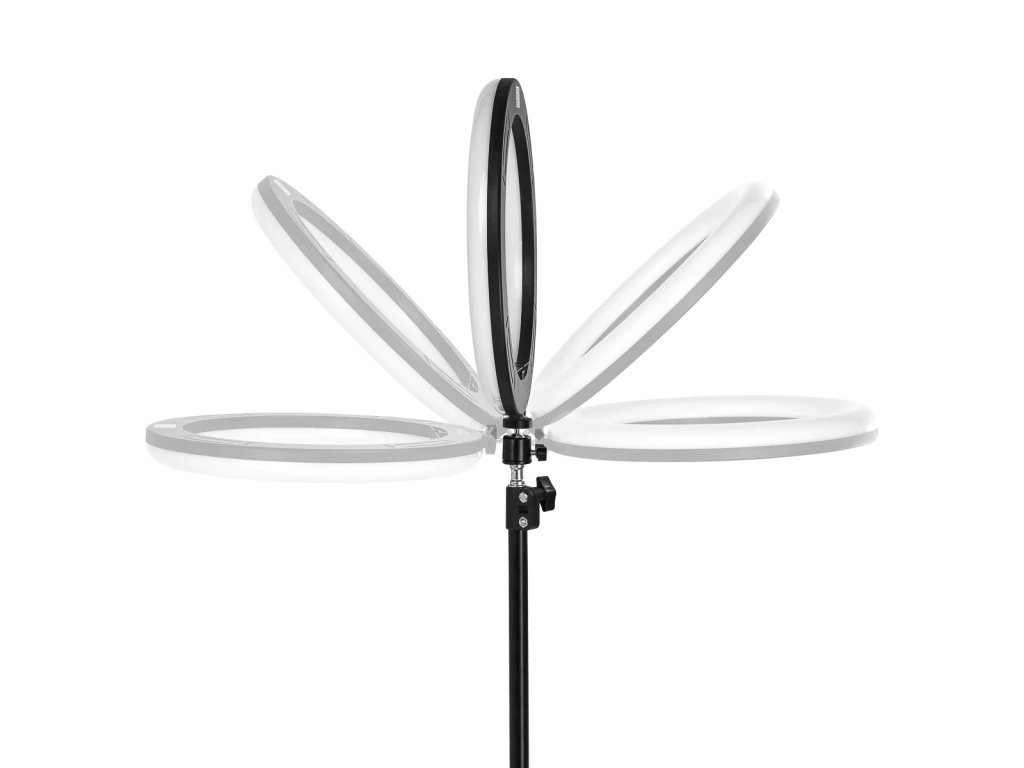 Kompaktní prstencová lampa Glow s vnějším průměrem 26 centimetrů je praktické zařízení, které poskytuje vynikající osvětlení pracoviště v kosmetickém salonu, kadeřnictví nebo tetovacím studiu a je vhodné i pro fotografování, natáčení videí a materiálů pro sociální média.