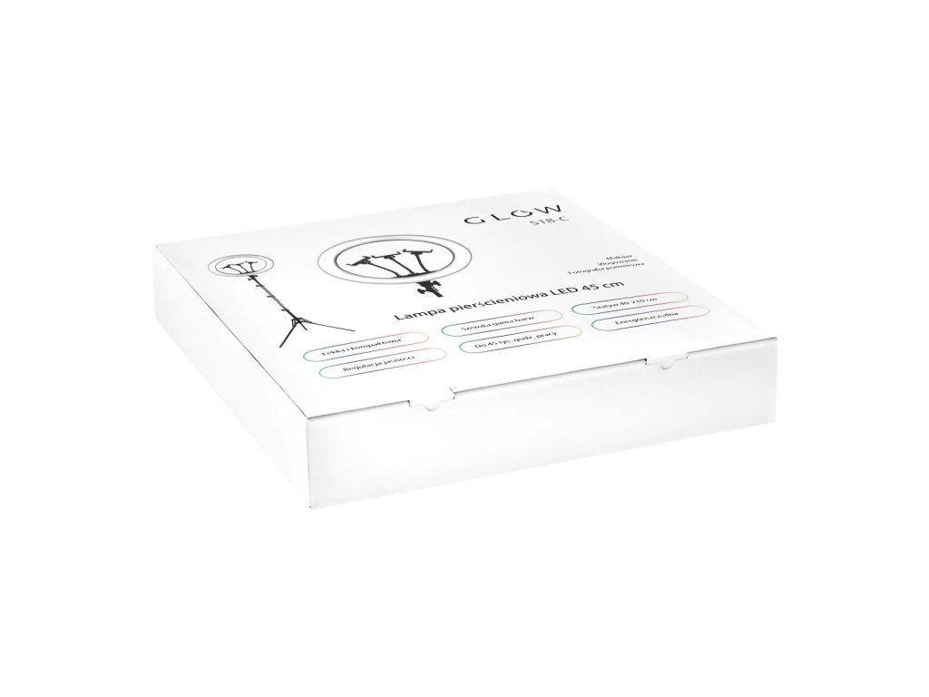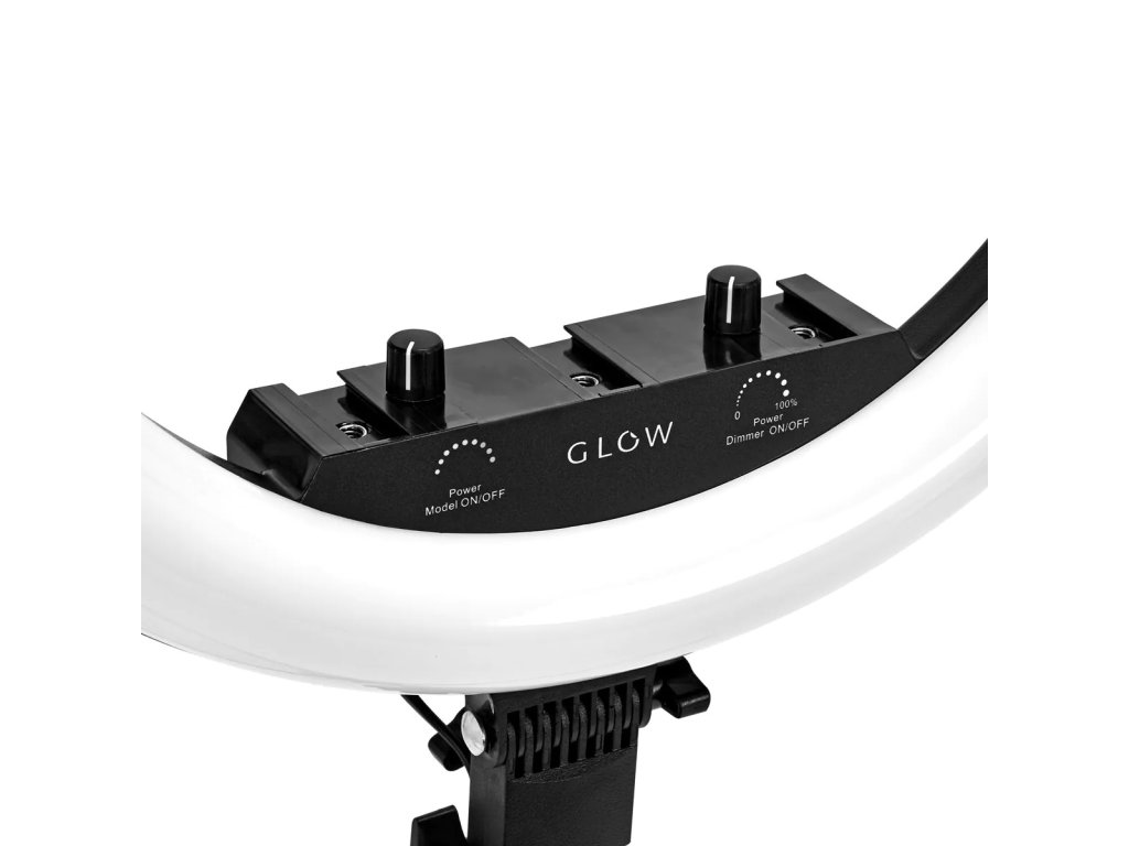 Prstencová lampa Glow o průměru 45 centimetrů je praktické zařízení, které skvěle osvětlí pracoviště v kosmetickém salonu, kadeřnictví nebo tetovacím studiu a poslouží také při fotografování, natáčení videí a materiálů pro sociální sítě.