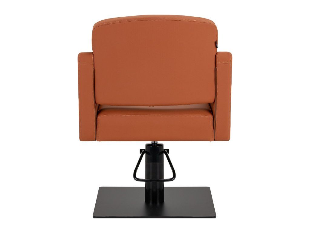 Minimalistické kadeřnické křeslo s hydraulickým zvedákem.