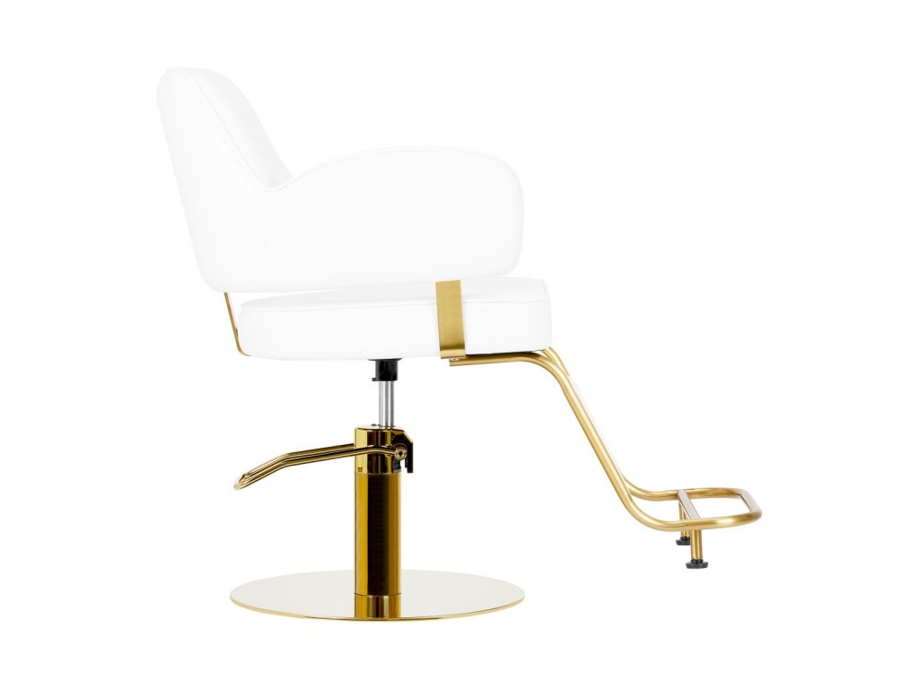 Kadeřnické křeslo LINZ na zlatém talíři - bílé