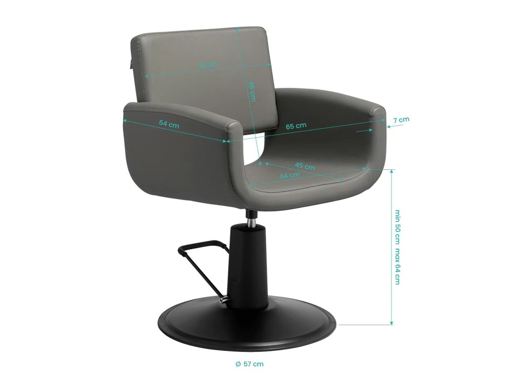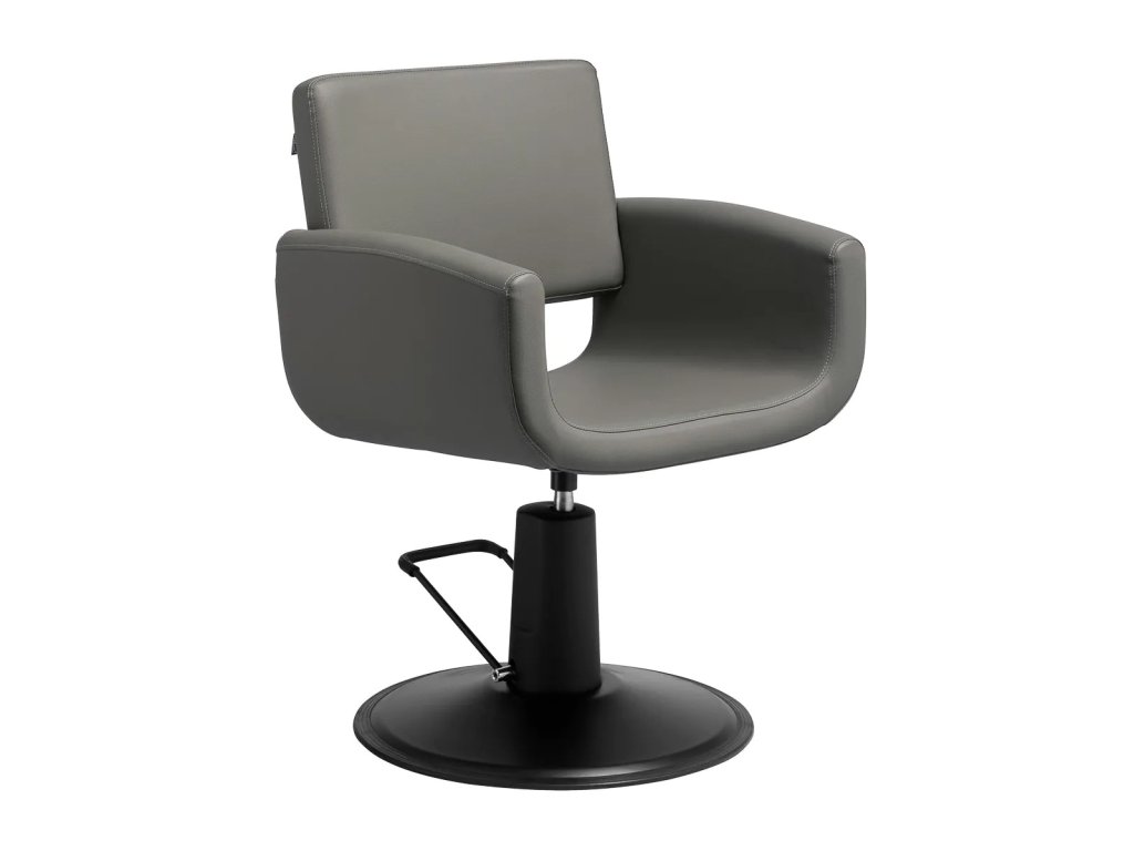 Kadeřnické křeslo Mataro - šedé s černou kulatou podstavou