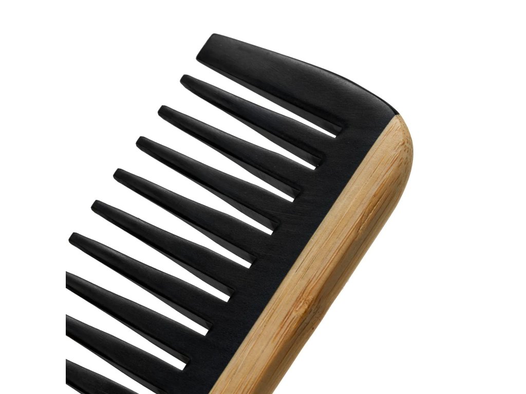 Hřeben je vybaven hustými, široce rozmístěnými zuby v odstínech černé, které usnadňují česání. Zuby jsou k vlasům šetrné, minimalizují riziko poškození a prameny jsou hladké a lesklé.