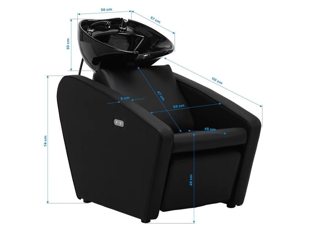 Kadeřnický mycí box Emma s elektrickou opěrkou nohou - černý