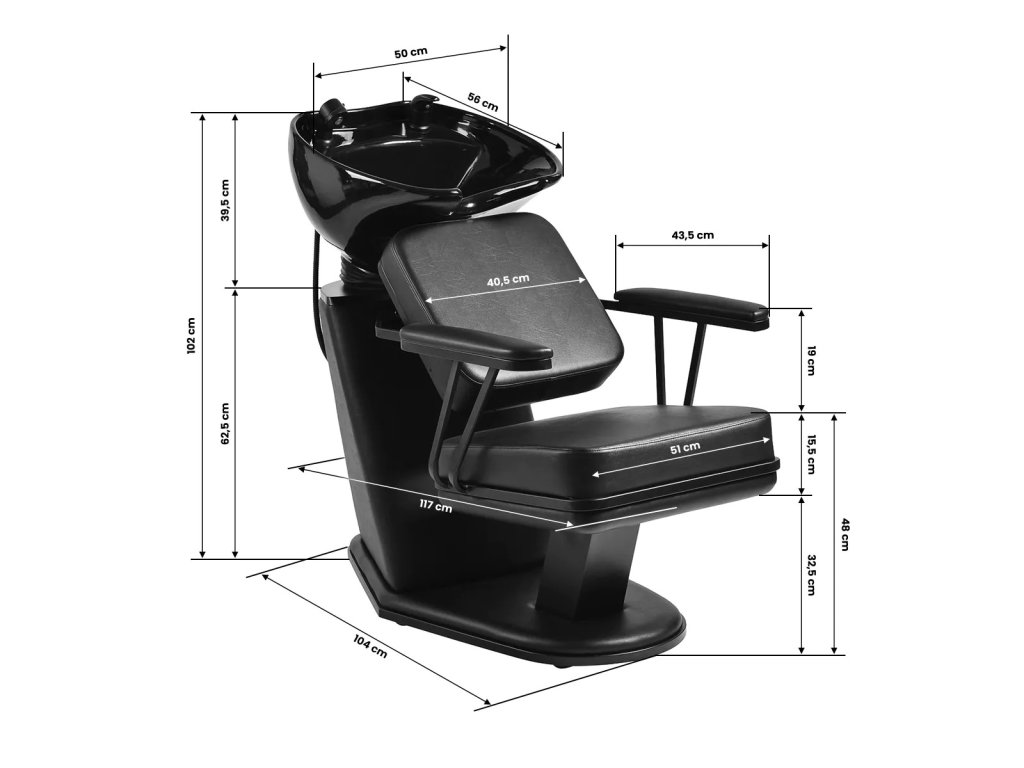 Tvarovaný límec a zkosená opěrka zad poskytují pohodlnou oporu při mytí vlasů, zatímco pohodlný černý plastový kryt eliminuje nepříjemný pocit chladu z keramického povrchu.