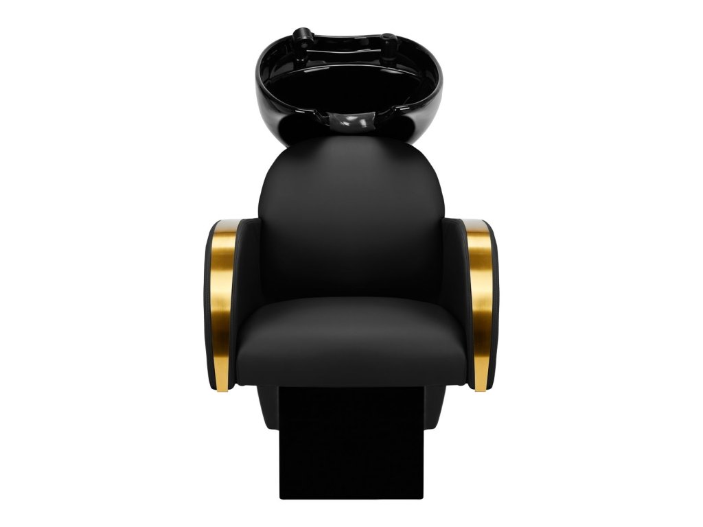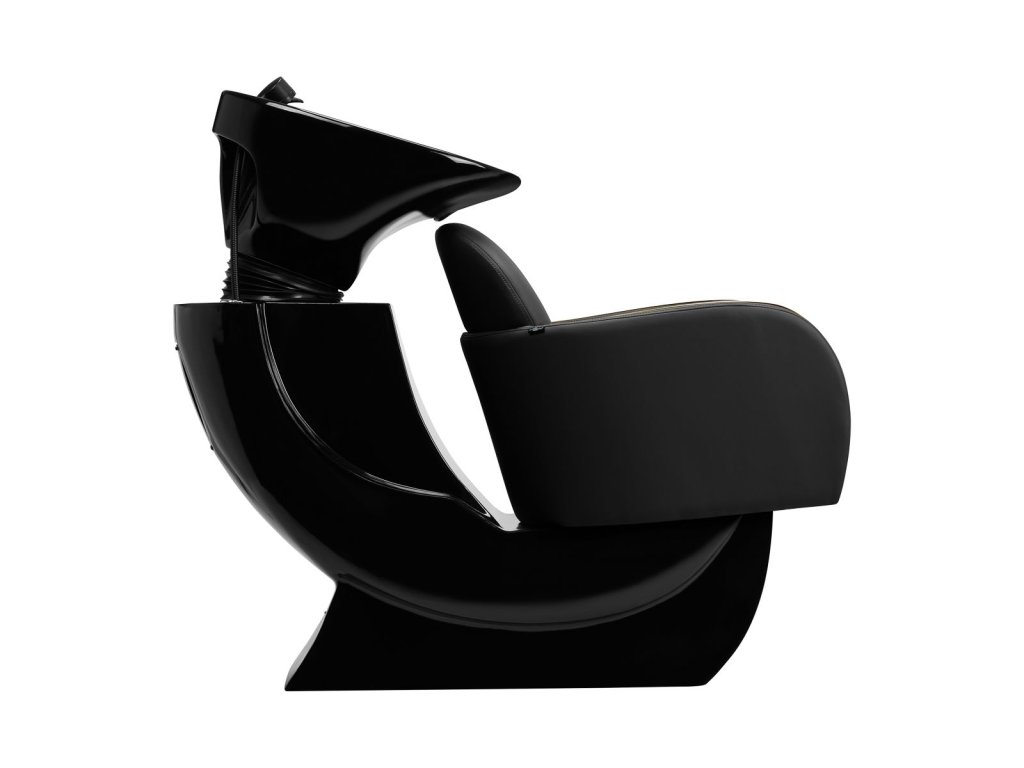Správně profilovaný límec poskytuje optimální oporu a pohodlí při mytí vlasů a pohodlný plastový potah v odstínech černé znamená, že klient nepocítí nepříjemnosti studeného keramického povrchu.