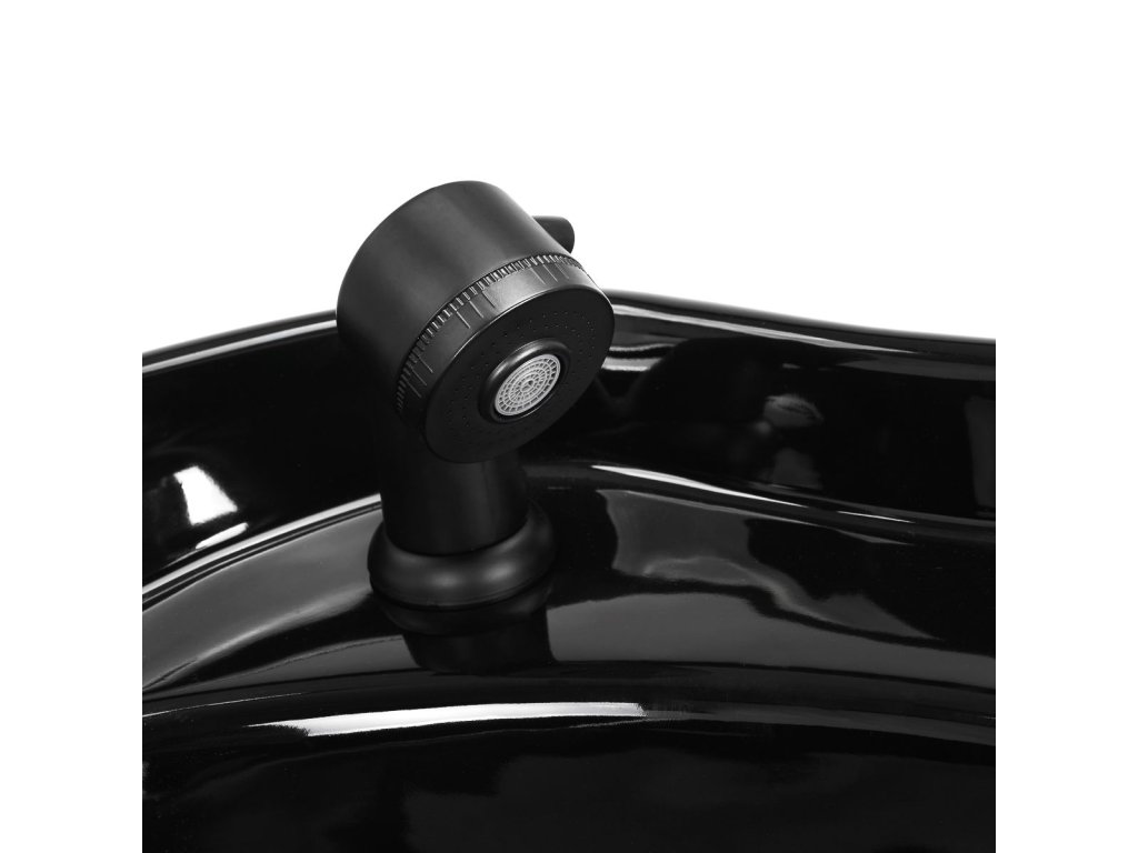Hloubka černé keramické umyvadlové mísy zabraňuje nadměrnému stříkání vody a přípravků používaných při ošetření.