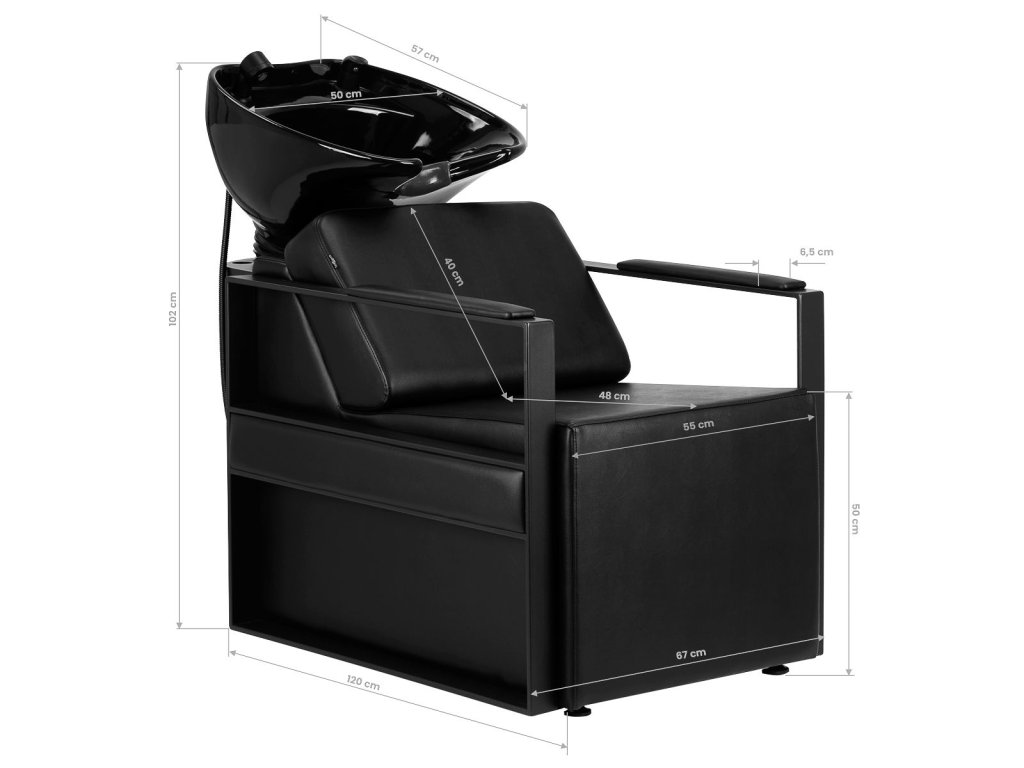 Stylový kadeřnický mycí box Modena s geometrickými tvary umožňuje efektivní péči o vlasy a mycí procedury.