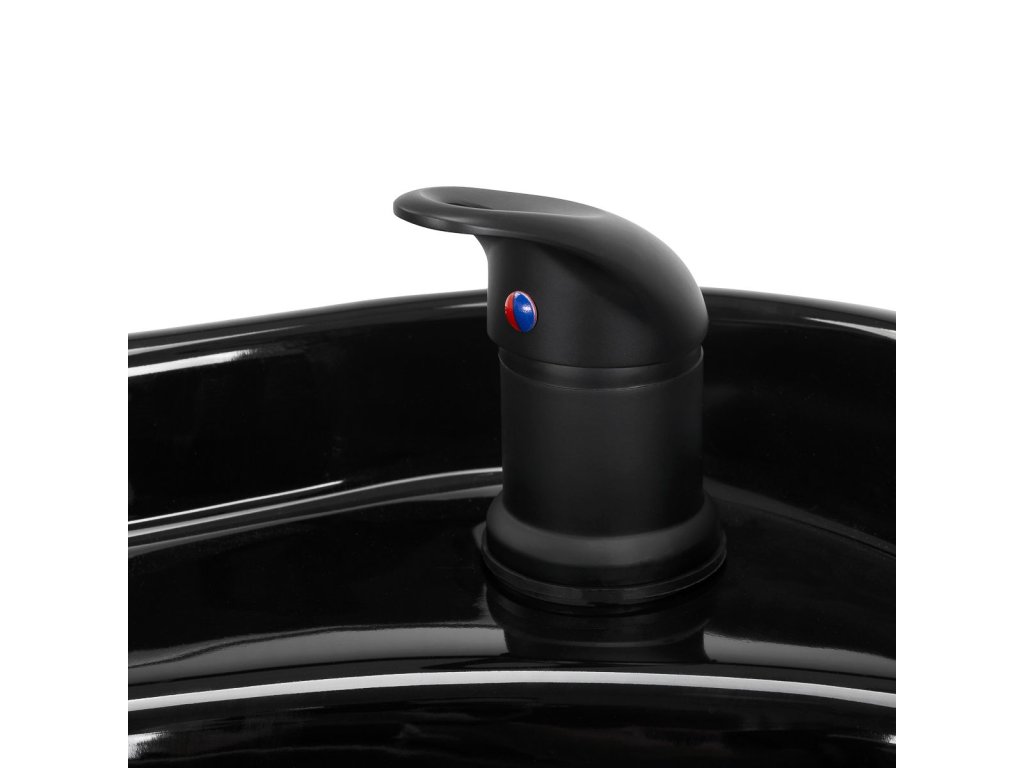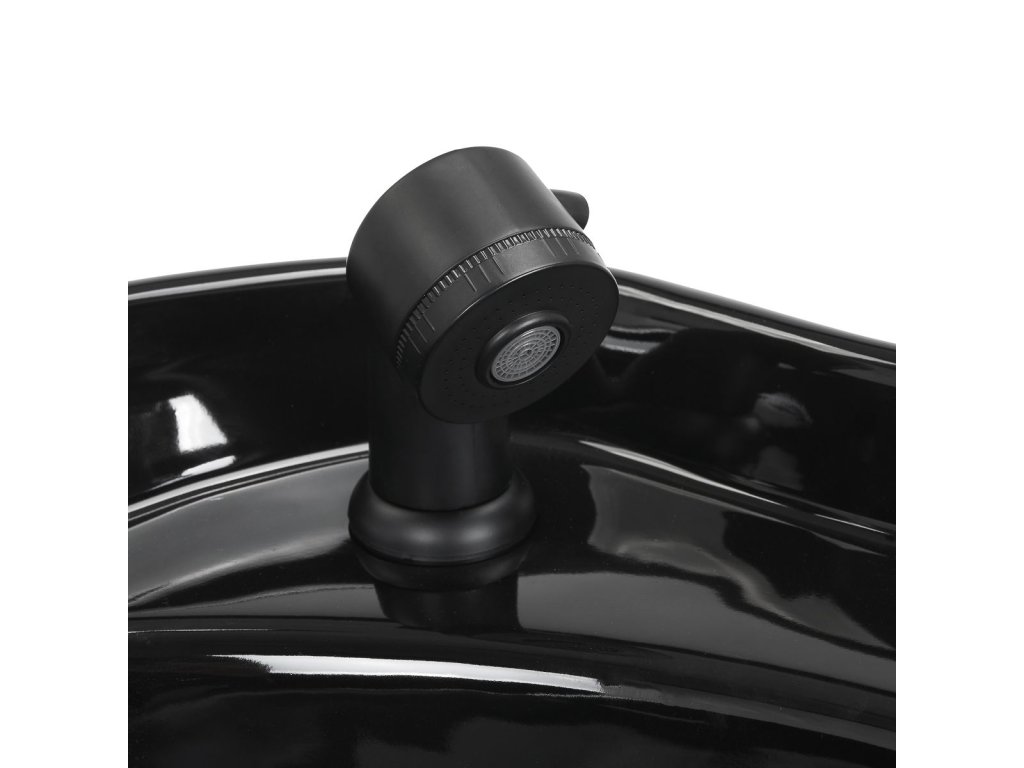 Hloubka černé keramické umyvadlové mísy zabraňuje nadměrnému stříkání vody a přípravků používaných při ošetření.
