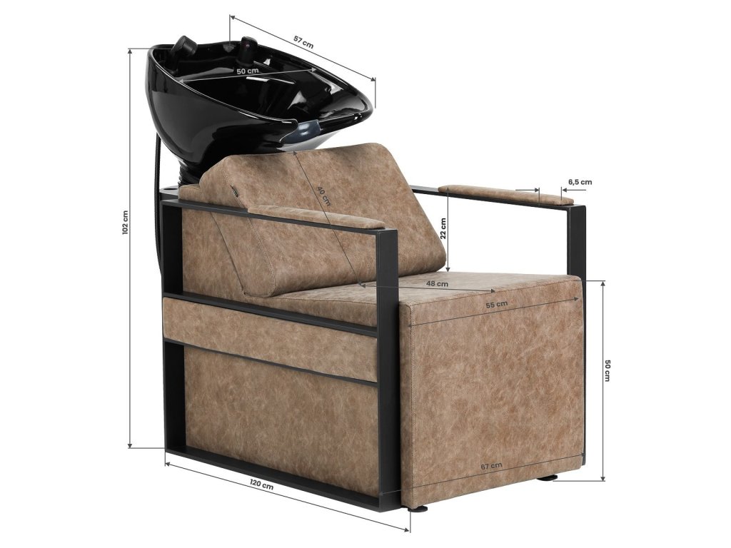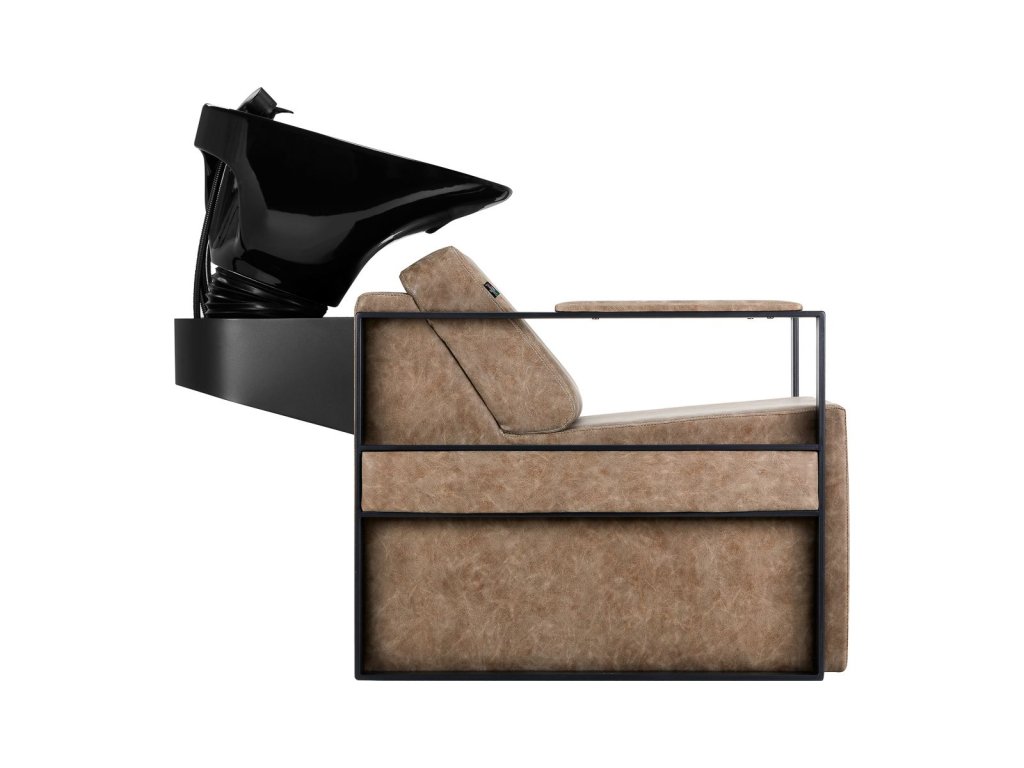 Stylový kadeřnický mycí box Modena s geometrickými tvary umožňuje efektivní péči o vlasy a mycí procedury.