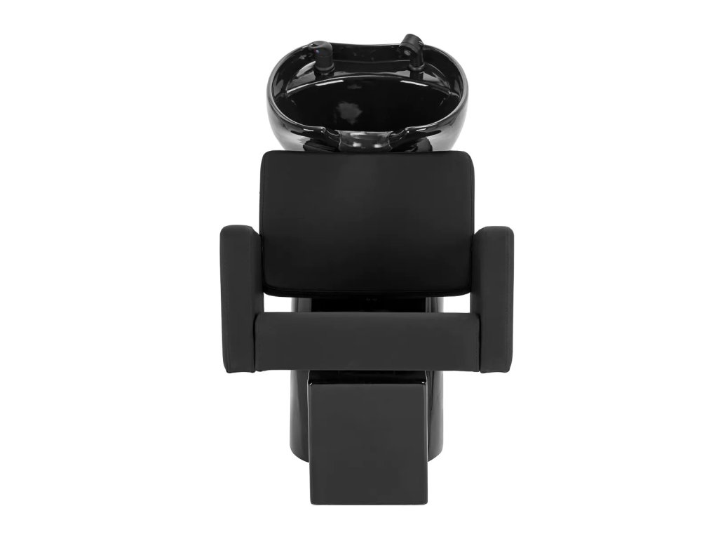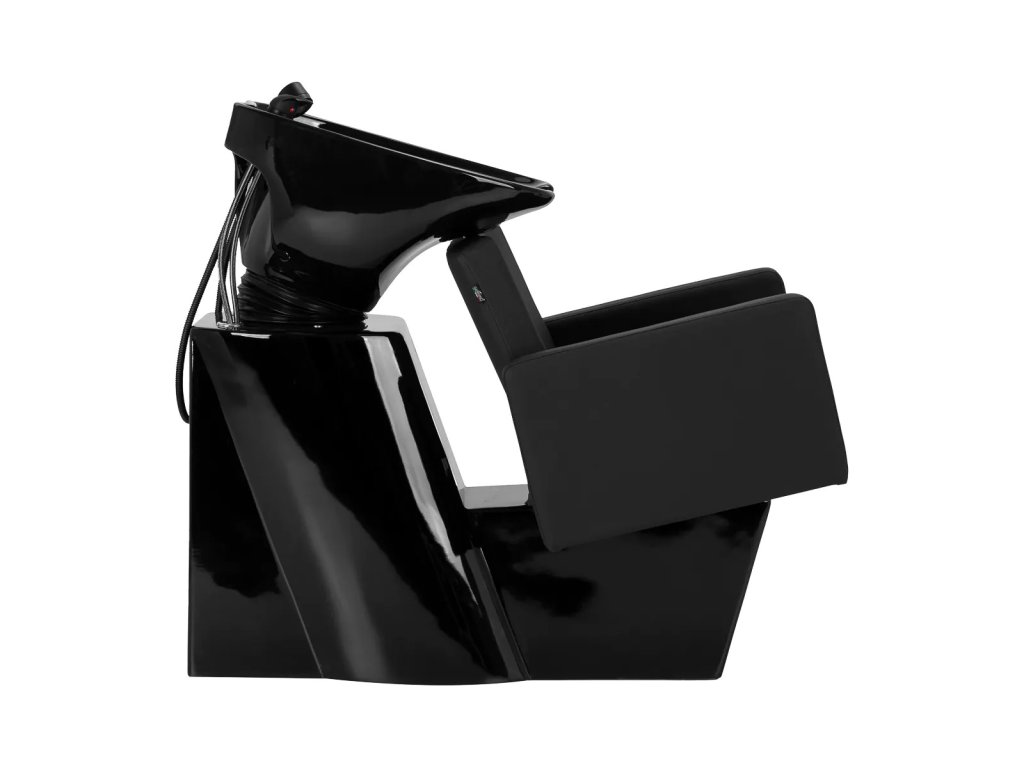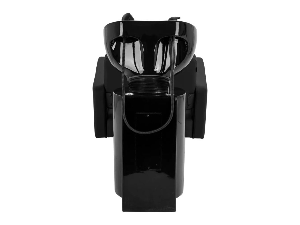 Hluboká černá keramická mísa minimalizuje stříkání vody a kosmetiky během ošetření.