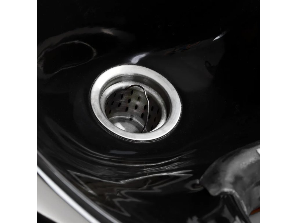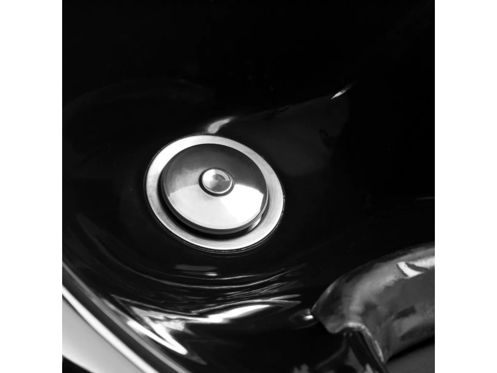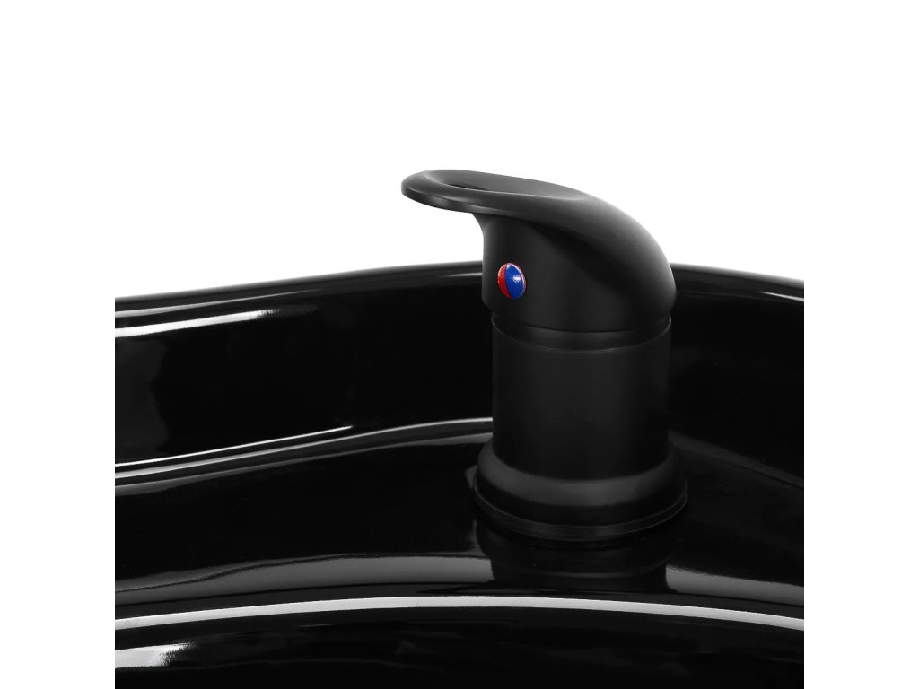 Hluboká černá keramická mísa minimalizuje stříkání vody a kosmetiky během ošetření.