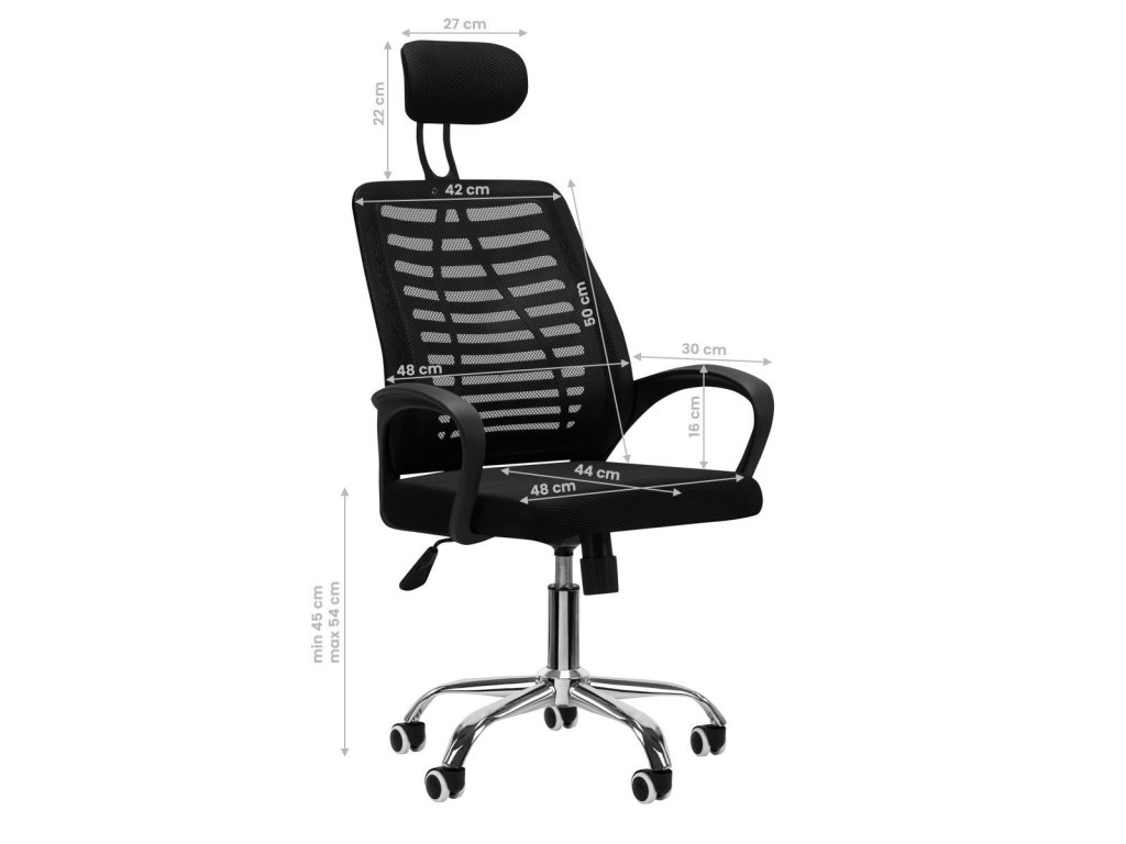 - Tvarovaný opěrák židle - Plynulé nastavení výšky - Plynový zdvih sedadla - Chromovaná základna křesla