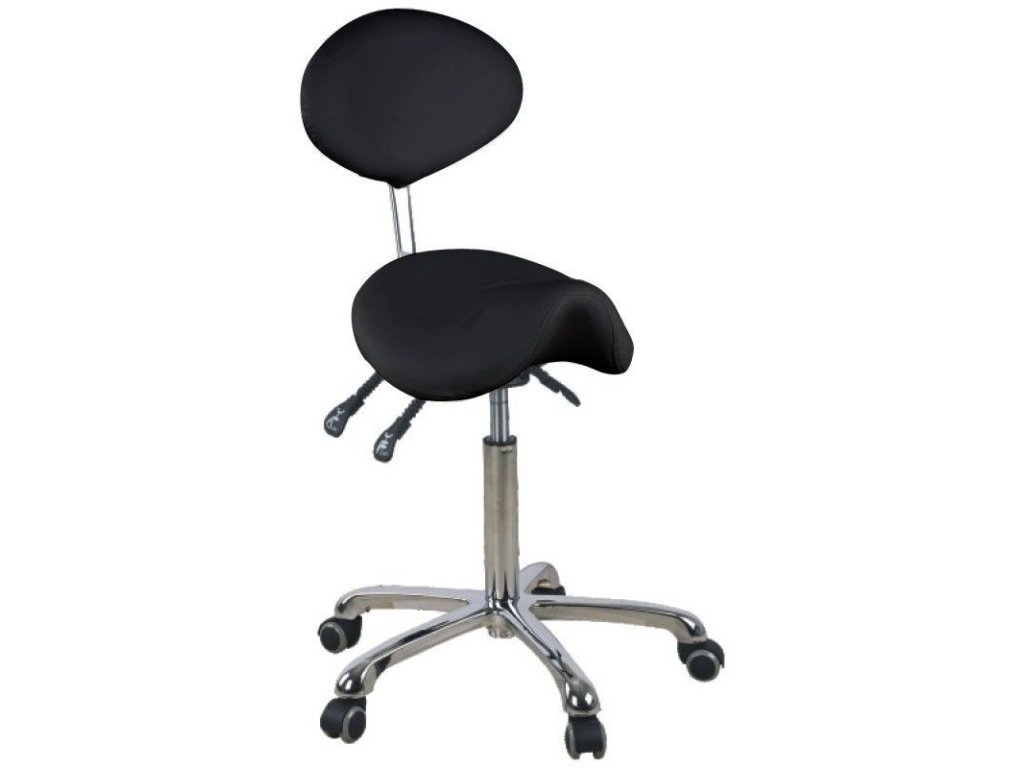 Pohodlná, exkluzívní, stabilní kosmetická židle, s tvarovaným sedátkem, na pětiramenném stabilním podstavci s gumovými kolečky; nastavitelný sklon sedátka a výšky opěradla;
