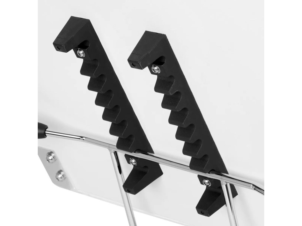 Křeslo lze sklopit do polohy lůžka. Díky otvoru v opěrce hlavy skrytého pod správně profilovaným polštářem je židle ideální pro ošetření obličeje i zad.