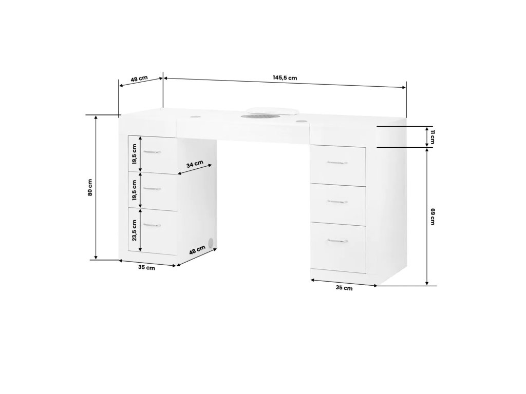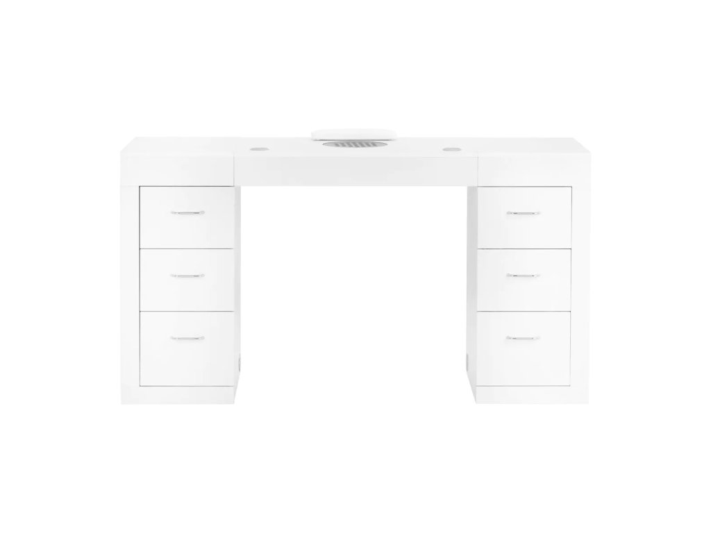 Inovativní kazetový odsávač prachu zabudovaný do pracovní desky výrazně zlepšuje pracovní komfort a hygienu tím, že účinně odstraňuje prach vznikající během kosmetických procedur jako je manikúra.
