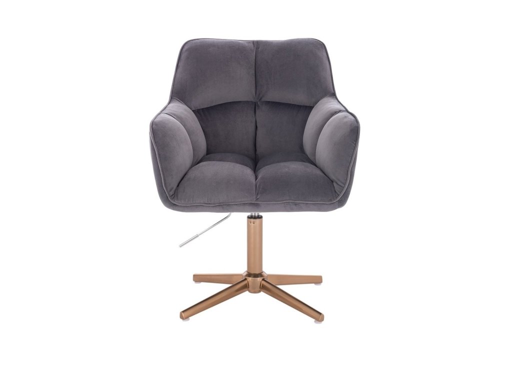 Křeslo AMALFI VELUR na zlatém kříži - tmavě šedé