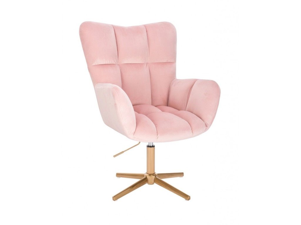 Křeslo AURORA VELUR na zlatém kříži - světle růžové
