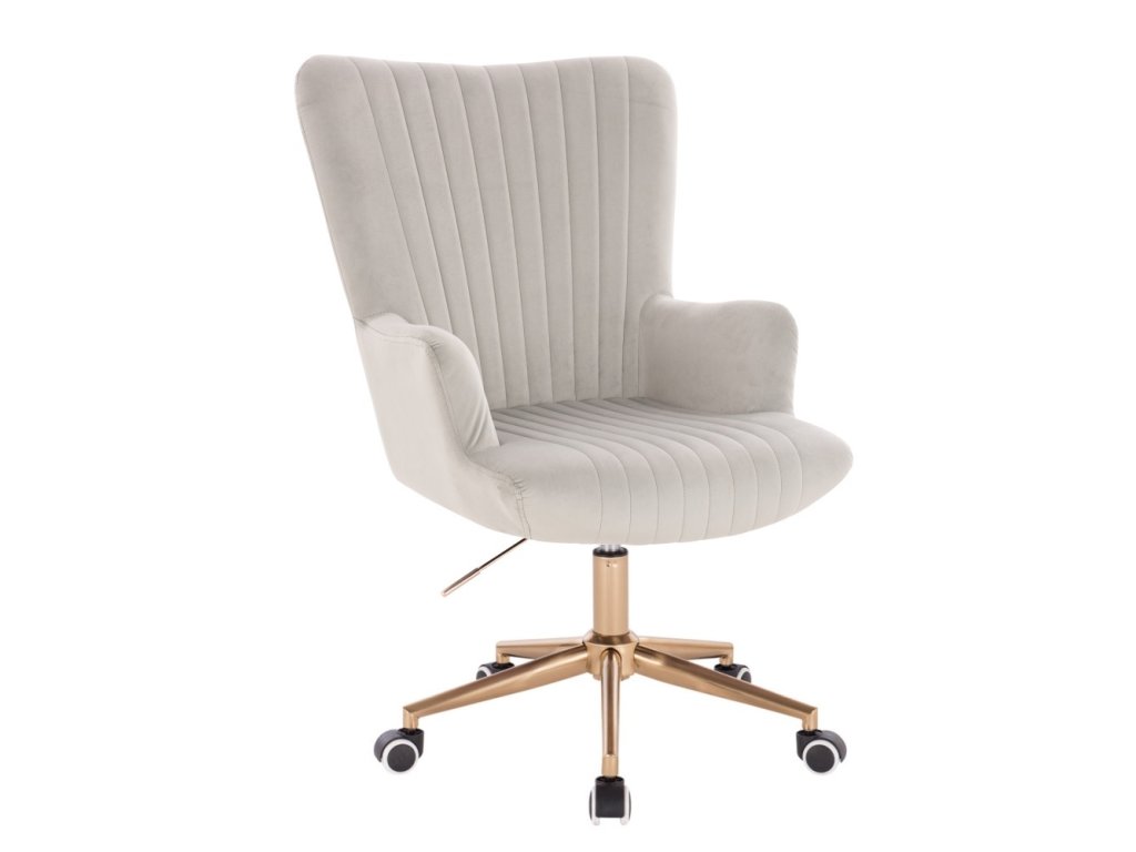 Křeslo AMADEO VELUR na zlaté podstavě s kolečky - světle šedé