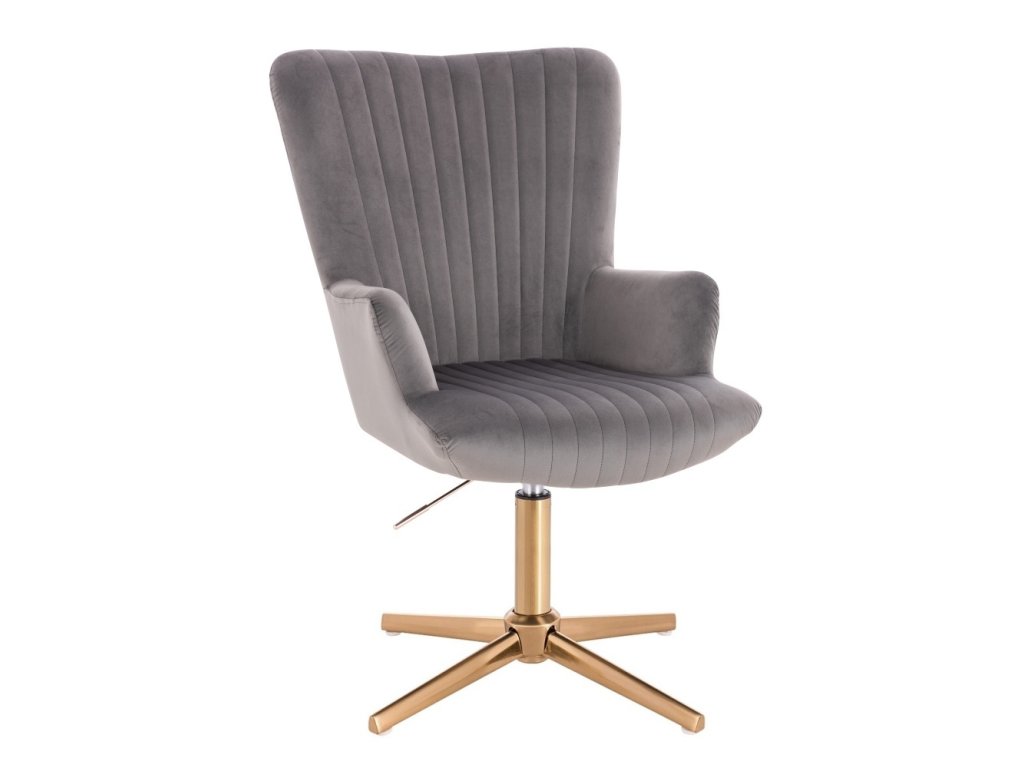 Křeslo AMADEO VELUR na zlatém kříži - tmavě šedé