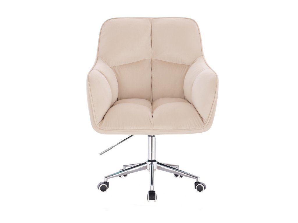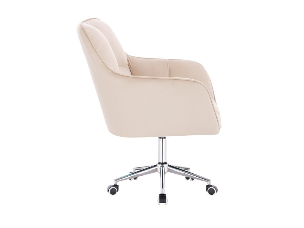 Křeslo AMALFI VELUR na stříbrné podstavě s kolečky - krémové