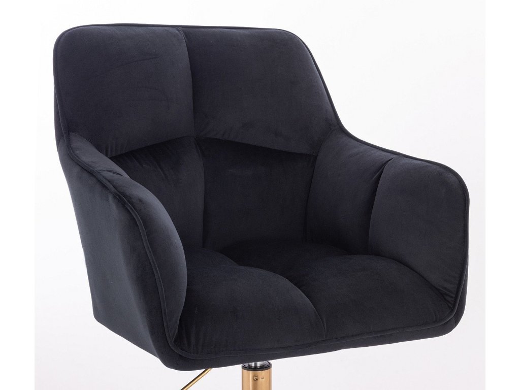 Křeslo AMALFI VELUR na zlaté podstavě s kolečky - černé