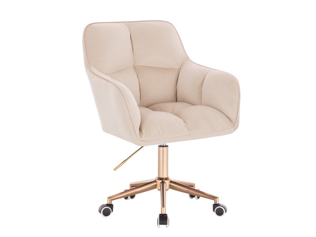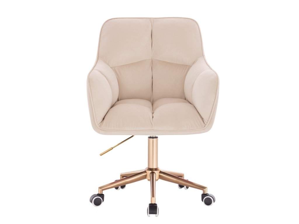 Křeslo AMALFI VELUR na zlaté podstavě s kolečky - krémové