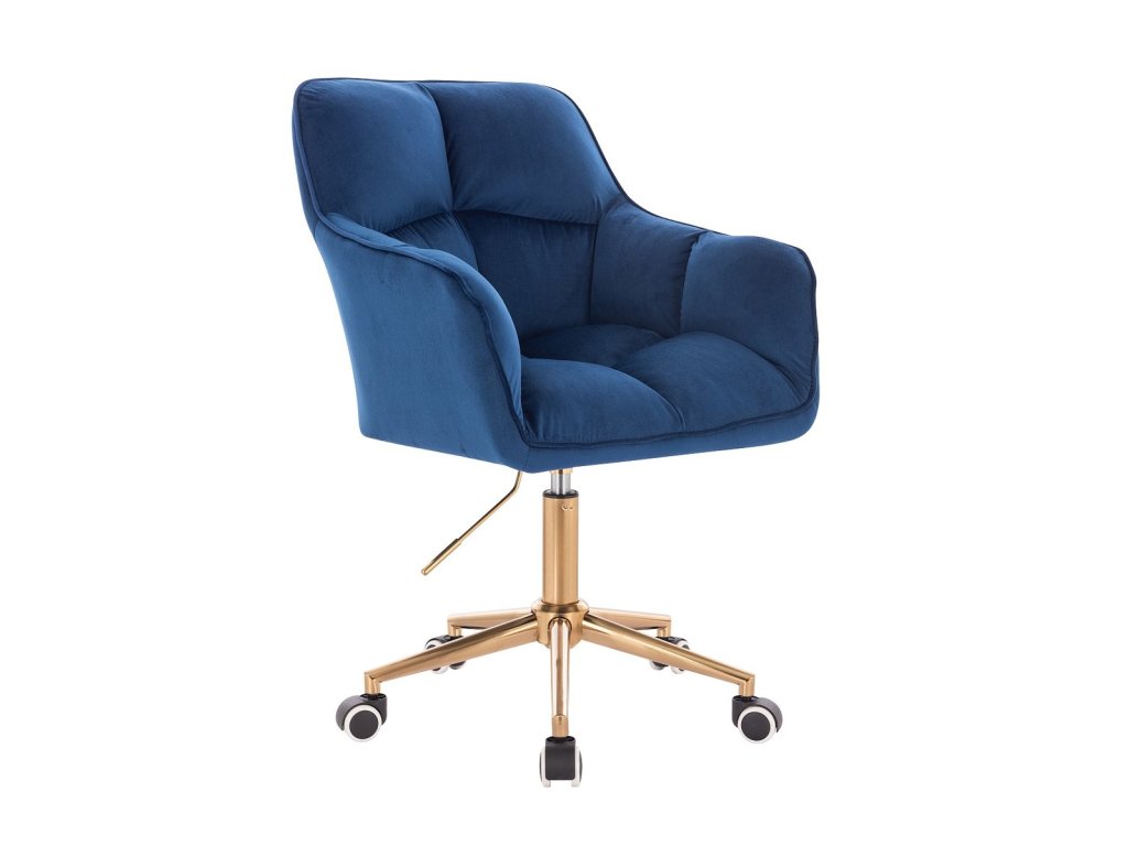 Křeslo AMALFI VELUR na zlaté podstavě s kolečky - modré