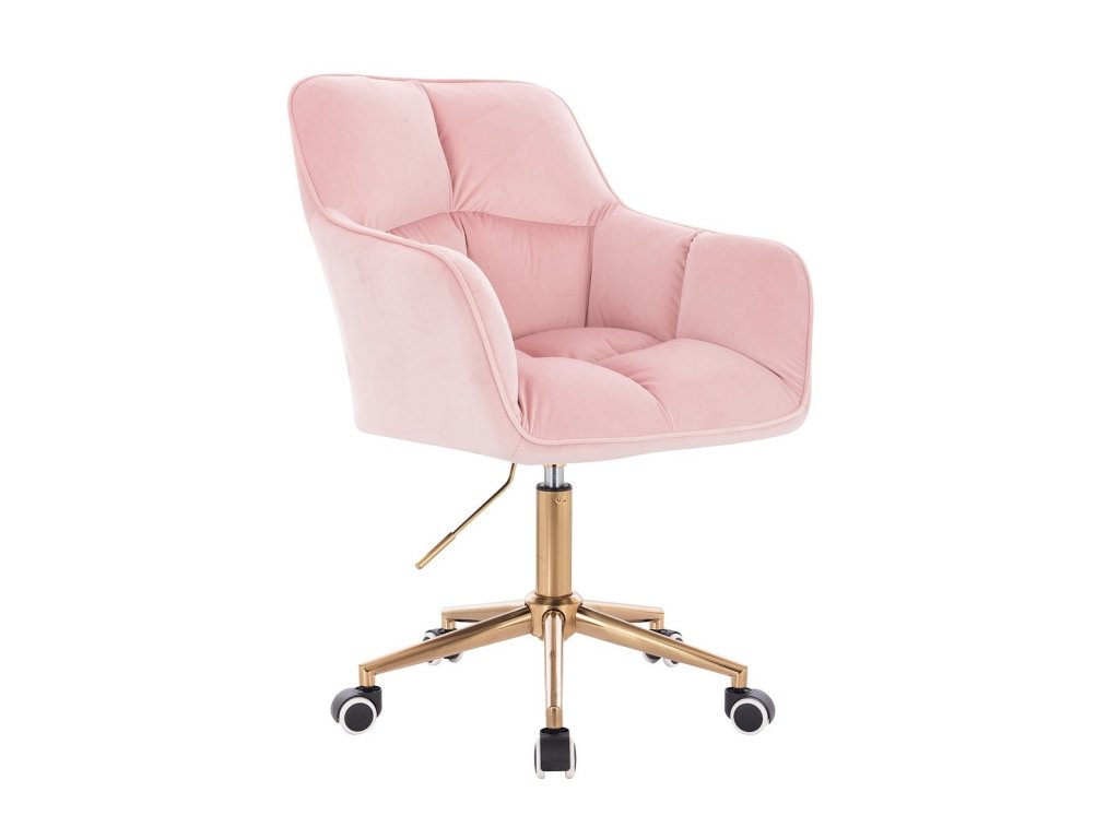 Křeslo AMALFI VELUR na zlaté podstavě s kolečky - růžové