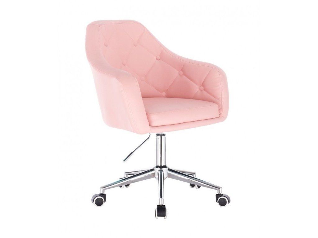 Křeslo ANDORA na stříbrné podstavě s kolečky - světle růžové