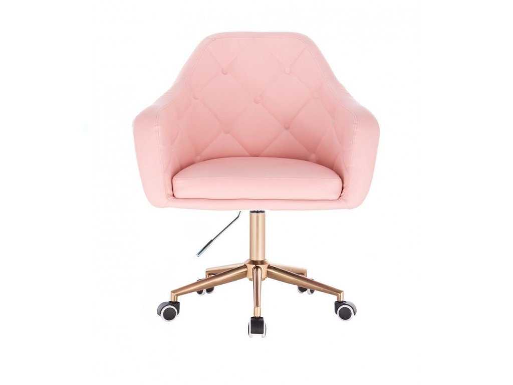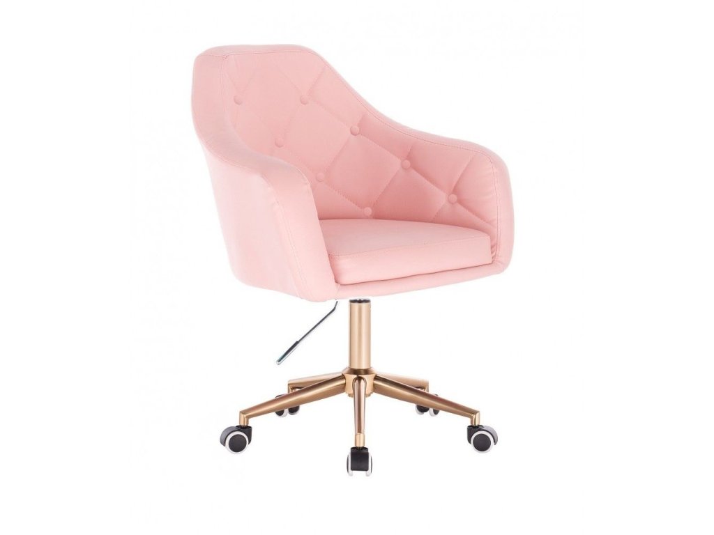 Křeslo ANDORA na zlaté podstavě s kolečky - světle růžové