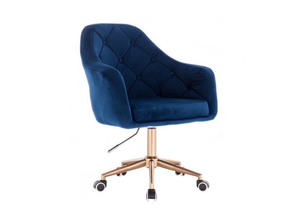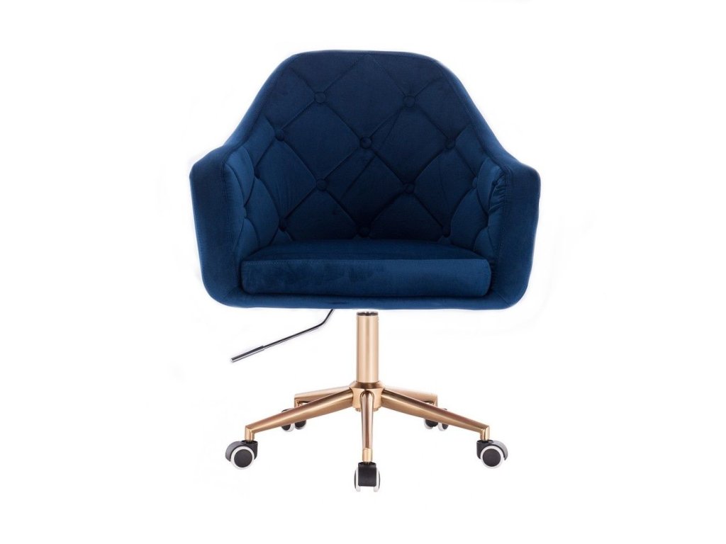 Křeslo ANDORA VELUR na zlaté podstavě s kolečky - modré