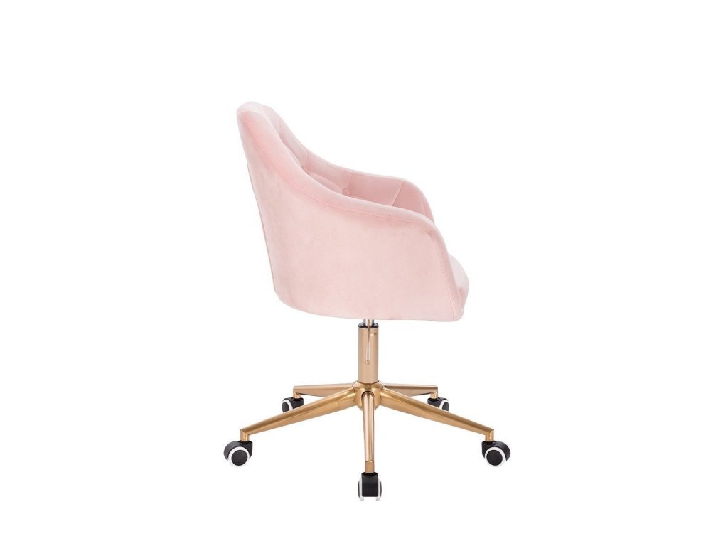 Křeslo ANDORA VELUR na zlaté podstavě s kolečky - světle růžové