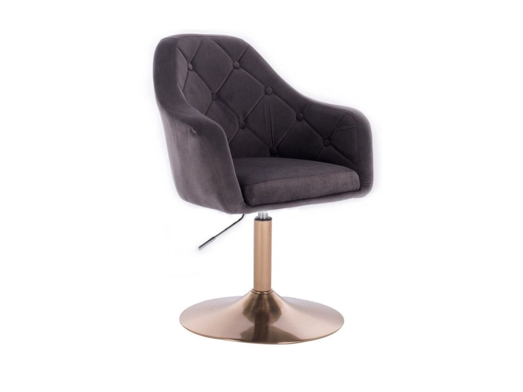 Křeslo ANDORA VELUR na zlatém talíři - tmavě šedé