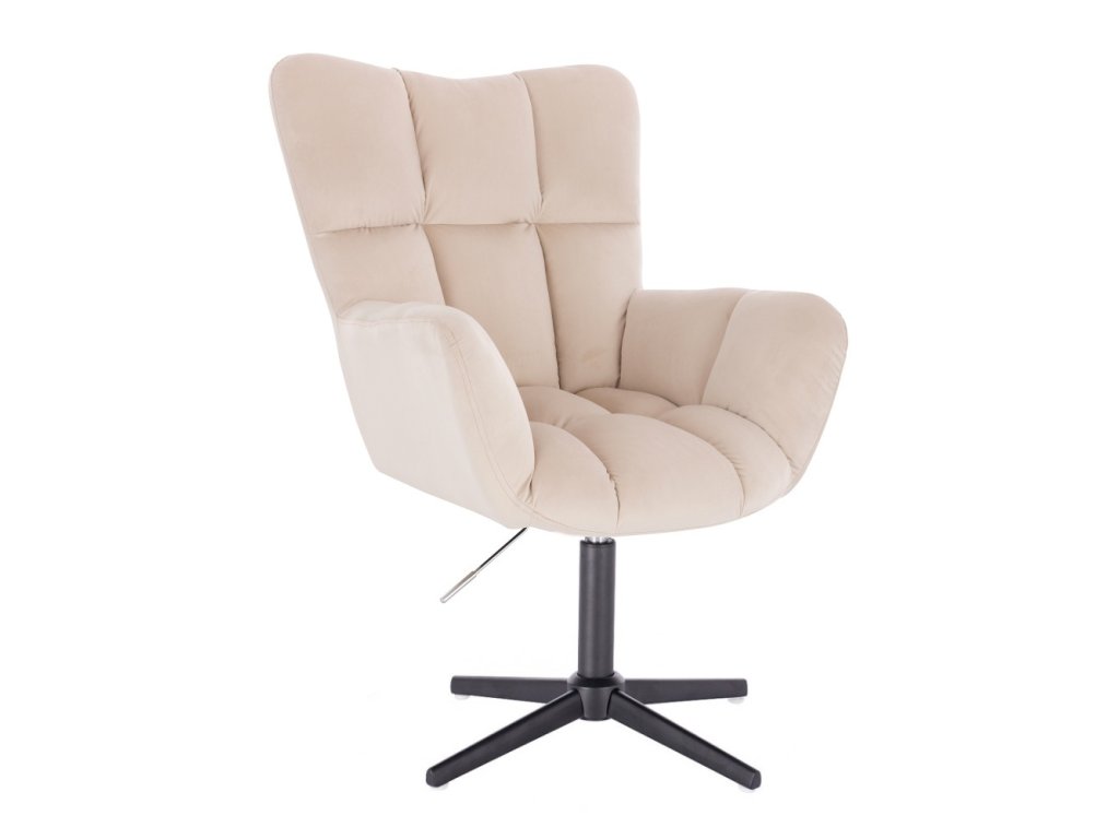 Křeslo AURORA VELUR na černém kříži - krémové