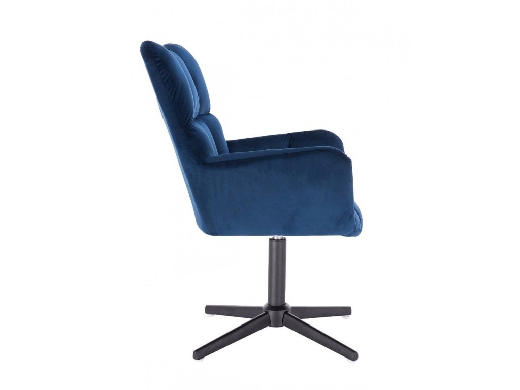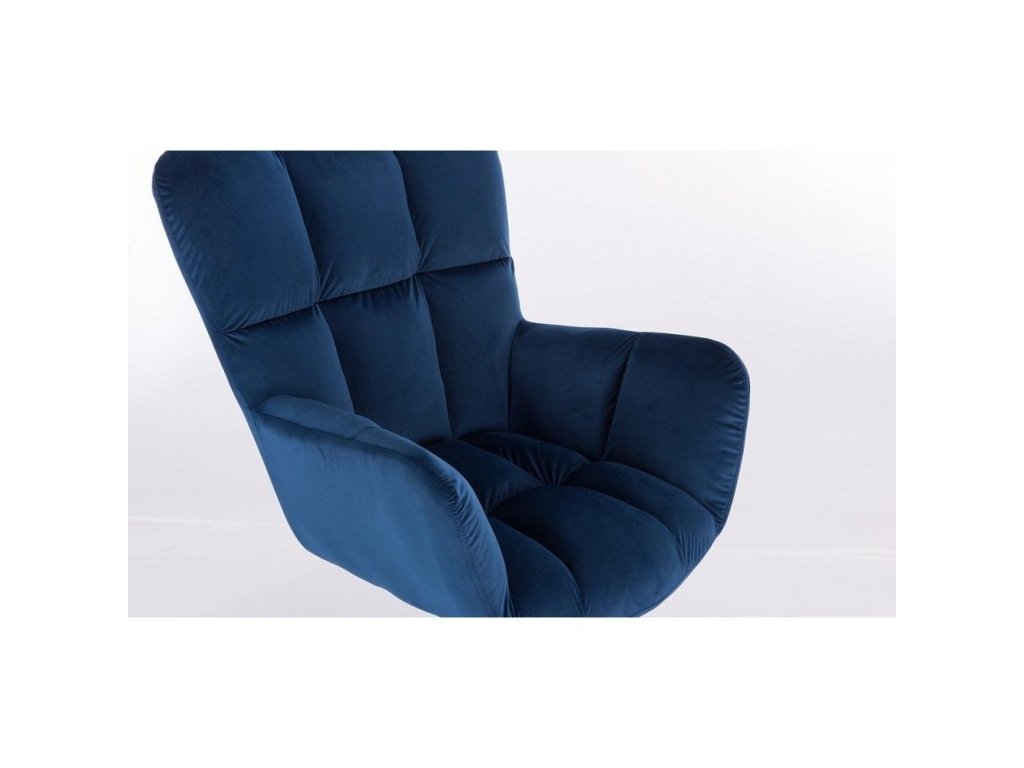 Křeslo je polstrované a potažené měkkou a pohodlnou velurovou tkaninou.