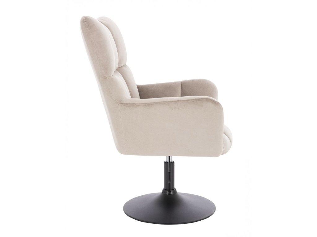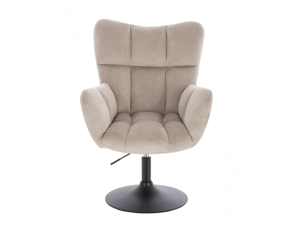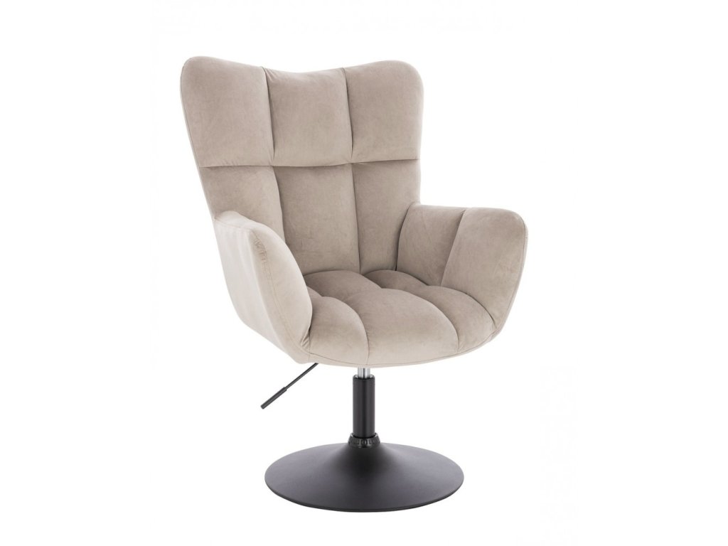 Křeslo je polstrované a potažené měkkou a pohodlnou velurovou tkaninou.